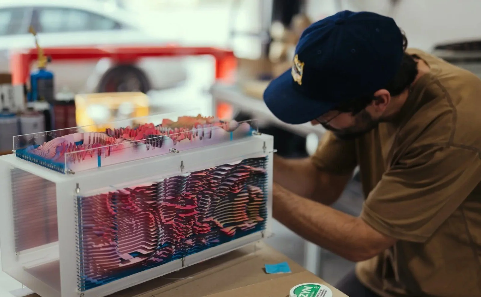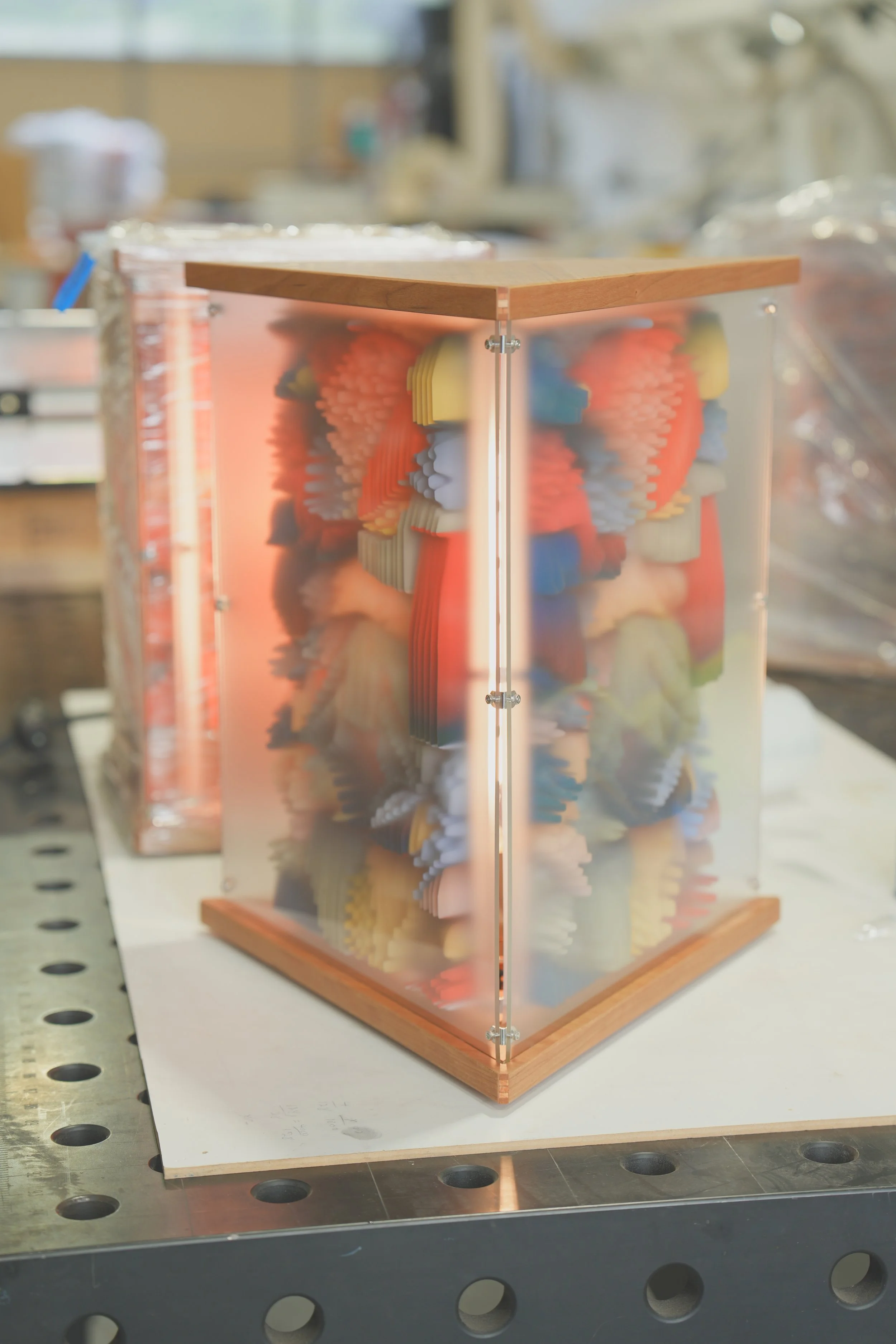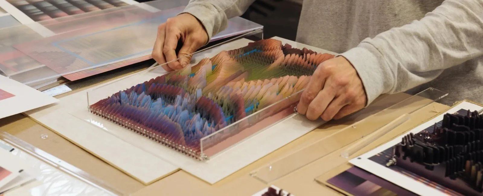 Most of his work is algorithmic and derives entirely from manually written code. He makes video, digital sculptures, and software applications.